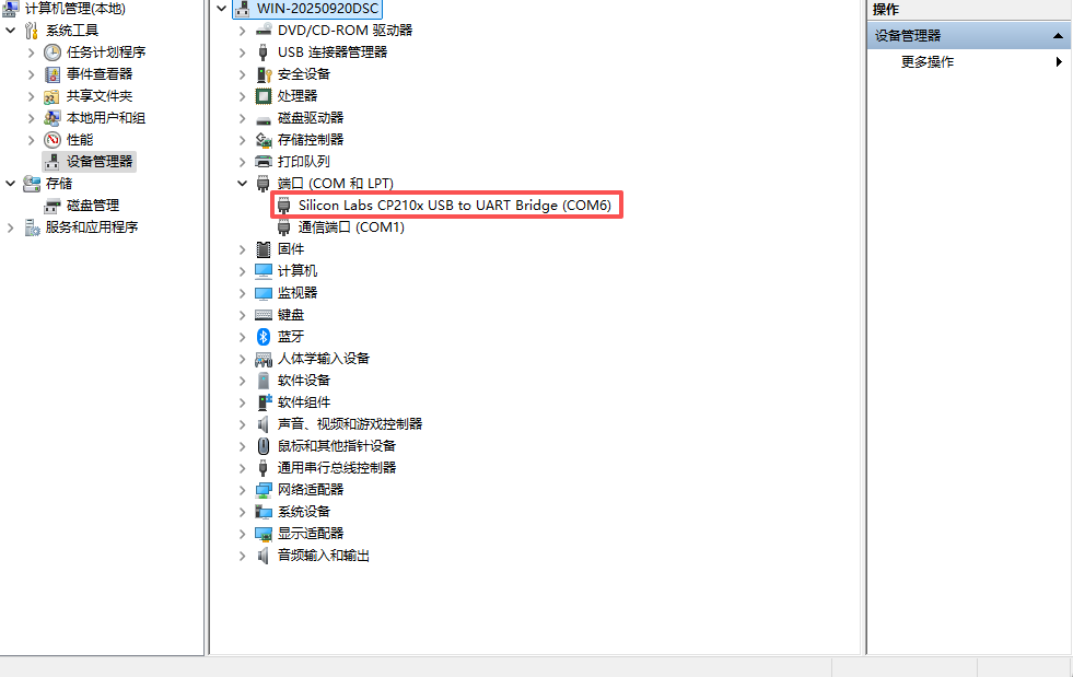 插上USB下载器(可以在天问官方淘宝上买一个)在电脑上查看下是那个COM口(我这边是COM6)